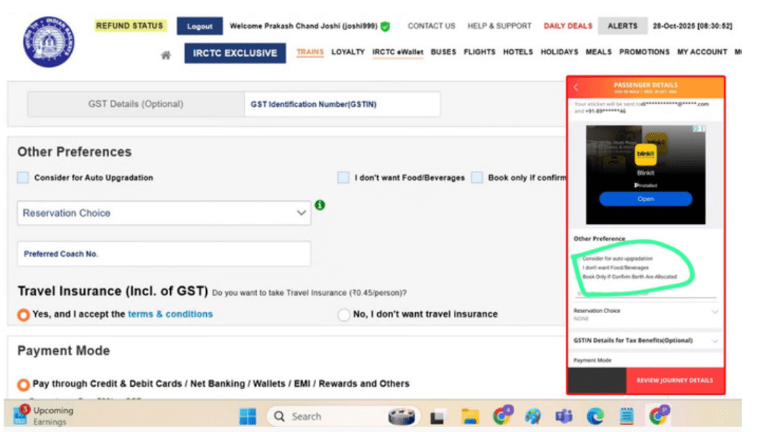 पहले यह विकल्प यात्री की जानकारी भरने वाले हिस्से के ठीक ऊपर ही मौजूद होता था, जिससे यात्री आसानी से उसे देख पाते थे। लेकिन अब यह नीचे जाने के कारण कई लोगों को दिखाई नहीं दे रहा, और वे यह समझ रहे हैं कि IRCTC ने यह विकल्प हटा दिया है।