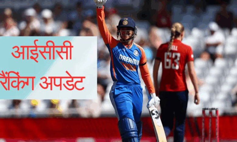 ICC Rankings: Smriti Mandhana ICC की नवीनतम रैंकिंग में स्मृति मंधाना को टी20 इंटरनेशनल करियर की सर्वश्रेष्ठ रेटिंग मिली है। वह बल्लेबाजों की रैंकिंग में तीसरे स्थान पर पहुंच गई हैं।