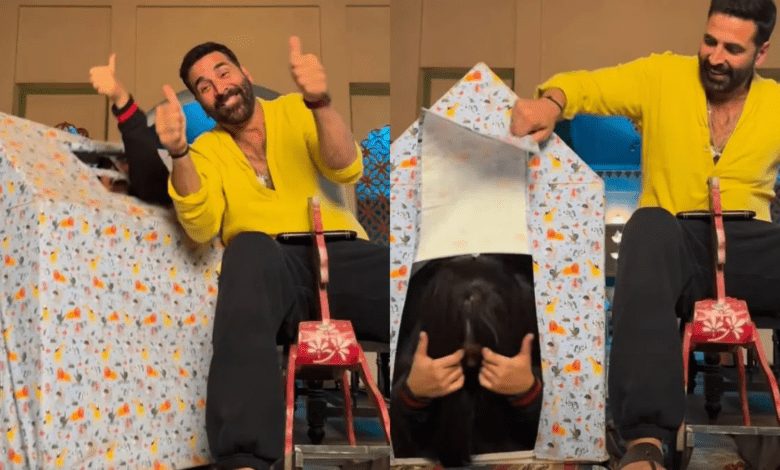 Bhooth Bangala: अक्षय कुमार अपने फनी अंदाज के लिए जाने जाते हैं। फिल्मों में ही नहीं सोशल मीडिया पर भी उनके फनी वीडियो छाए रहते हैं। हाल में ही उनका एक वीडियो सामने आया, जिसमें एक हसीना उनका साथ देती दिख रही है।
