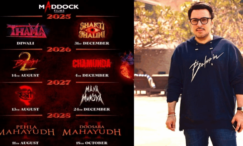 Maddock Films: बॉलीवुड में प्रोड्यूसर दिनेश विजान ने साल 2018 में अपने हॉरर यूनिवर्स की शुरुआत की थी। उनकी पहली हॉरर कॉमेडी फिल्म ‘स्त्री’ थी, जिसमें राजकुमार राव और श्रद्धा कपूर ने धमाल मचाया। इसके बाद से उन्होंने ‘भेड़िया’, ‘मुंज्या’ और ‘स्त्री 2’ जैसी बढ़िया फिल्में दर्शकों को दीं। इस सभी फिल्मों को ऑडियंस का प्यार मिला है। साल 2025 में ही मैडॉक फिल्म्स के तले तीन बड़ी फिल्में – ‘थामा’, ‘शक्ति शालिनी’ और ‘चामुंडा’ बन रही हैं. पिछले साल इन तीनों फिल्मों की चर्चा हुई थी। अब दिनेश विजान ने अपने बैनर मैडॉक फिल्म्स के तले 8 नई फिल्मों को बनाने का ऐलान किया है।