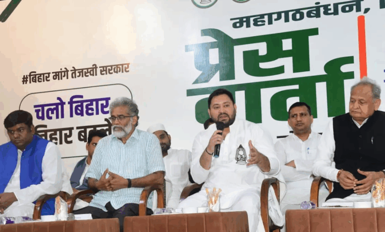 प्रेस कांफ्रेंस में राजद, कांग्रेस, वीआइपी, माले, सीपीआई और सीपीएम समेत सभी सहयोगी दलों के प्रमुख नेता एक मंच पर मौजूद। नेताओं ने कहा “बिहार में जनता अब बदलाव चाहती है और वह बदलाव केवल तेजस्वी यादव के नेतृत्व में ही संभव है। कांग्रेस के वरिष्ठ नेता और पर्यवेक्षक अशोक गहलोत ने कहा कि कांग्रेस महागठबंधन की मजबूती के साथ खड़ी है। “हमारी लड़ाई किसी व्यक्ति से नहीं, बल्कि उस व्यवस्था से है जिसने बिहार को पिछड़ेपन में धकेला है।”
