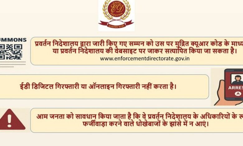 ED समन पर अब होगा QR कोड… डिजिटल अरेस्ट धोखाधड़ी रोकने के लिए उठाया बड़ा कदम