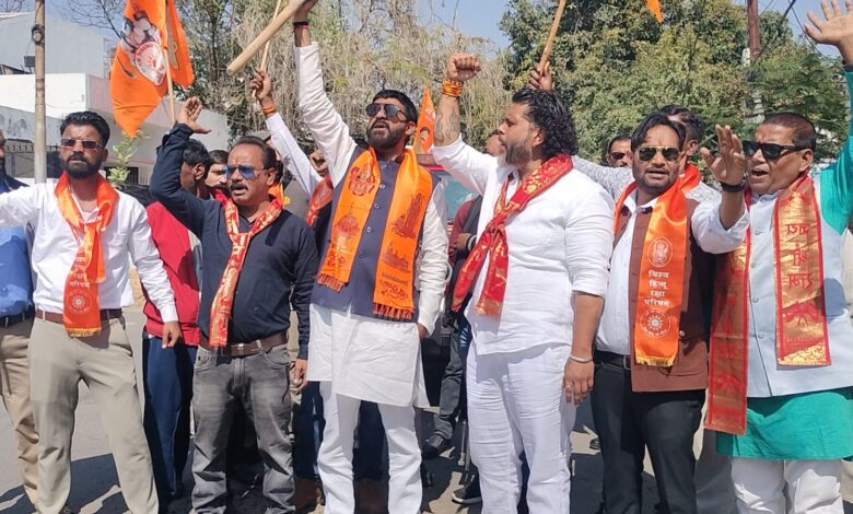 पुलिस द्वारा रोके जाने के बाद कार्यकर्ताओं ने सड़क पर बैठकर प्रदर्शन शुरू कर दिया। प्रदर्शन के दौरान कार्यकर्ताओं के हाथों में भगवा झंडे दिखाई दिए, वहीं कुछ के पास कुल्हाड़ी और फावड़ा भी था। करीब दो घंटे तक चले इस प्रदर्शन के दौरान नारेबाजी होती रही, जिससे आसपास के इलाके में यातायात प्रभावित हुआ और माहौल तनावपूर्ण हो गया। स्थिति को संभालने के लिए मौके पर भारी पुलिस बल तैनात किया गया।